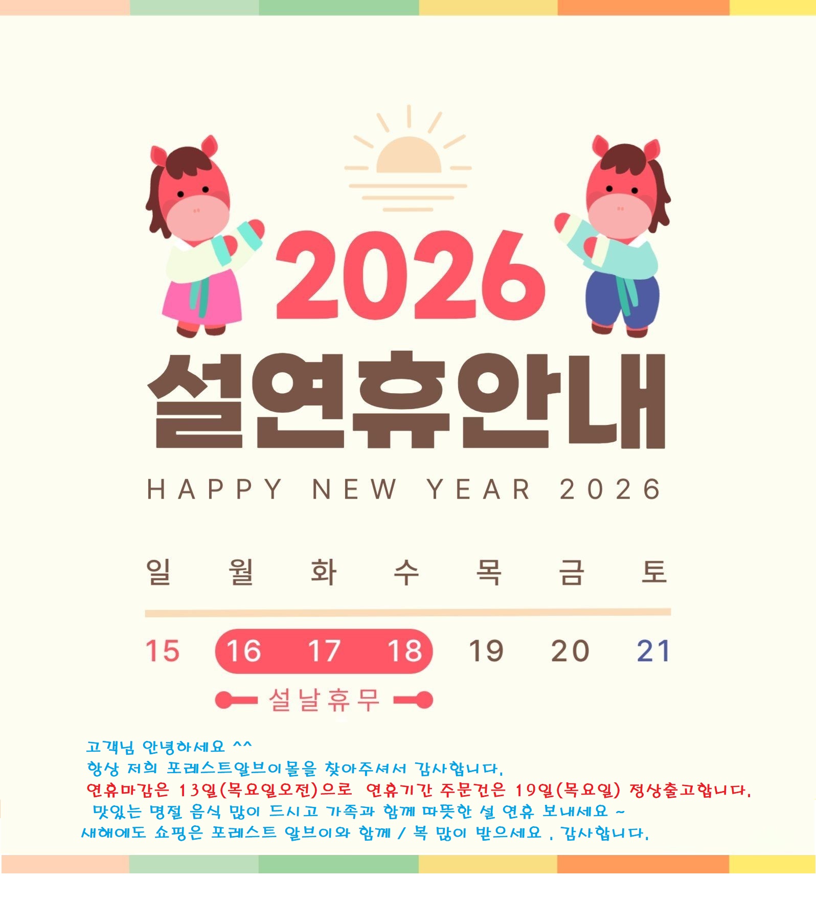 2026 ³â ¼³¸íÀý ¿¬ÈÞ °øÁöµå¸³´Ï´Ù.
